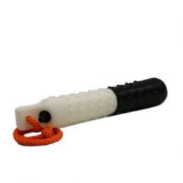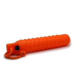 Das Wasserdummy ist aus leicht flexiblem Kunststoff und gibt im Fang des Hundes etwas nach. Durch die Noppen ist das Dummy vom Hund gut aufzunehmen und zu apportieren. Das Dummy ist keinesfalls als Kauspielzeug, Zergel oder Spielzeug zu verstehen, sondern als Ausbildungszubehör für Hunde, die das Bringen eines Gegenstandes erlernen sollen. Dabei ist wichtig, dass der Hund weich im Fang ist und nicht auf dem Wasserdummy beißt.