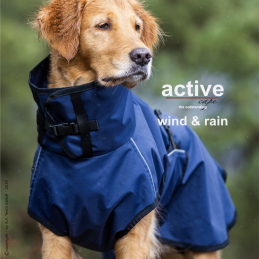 Das active cape WIND & RAIN ist für Hunde gedacht, die bei „widrigen“ Wetterbedingungen vor Wind und Nässe geschützt werden sollen. Das Außenmaterial ist aus 100% Polyamid, mit einer sehr hohen wasserabweisenden Beschichtung, die Wind- und Wasserdichtigkeit, sowie die Atmungsaktivität gewährleistet. Das Cape hat innen ein leichtes Netzfutter, was für zusätzliche Unterlüftung sorgt.