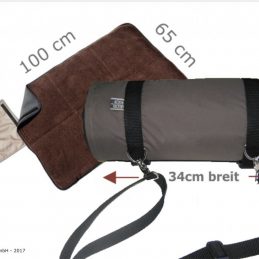 Wasserabweisende, hervorragend isolierende Universaldecke, hergestellt aus ausgesuchten hochwertigen Materialien, einrollbar mit Trageriemen: Hundedecke „warmup blanket“ von actionfactory aus der fit4dogs line.