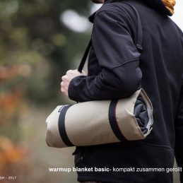 Falten -> zusammenrollen -> und mit nur 2 Schnallen schließen. Das blanket ist somit optimal verpackt und kann – über die Schulter gehängt – immer dabei sein.