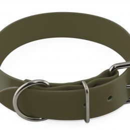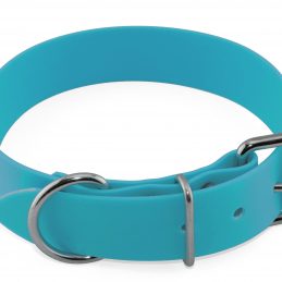 Hochwertiges BioThane® Halsband aus 38 mm breiter Standard (2,5mm dick) oder Super Heavy Beta BioThane® (3,8mm dick) – geeignet für große und sehr große Hunde. Dieses wasserfeste Halsband ist in einer großen Anzahl an Farben verfügbar. Zusätzlich können wir Ihr Halsband auch mit einer wasserfesten Polsterung versehen.