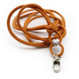Die hochwertige Paracordschnur ist in der Länge verstellbar und kann nach Bedarf angepasst werden. Das Herz steht im Zentrum des schlichten Pfeifenbandes und ist farblich abgestimmt mit dem Karabiner.