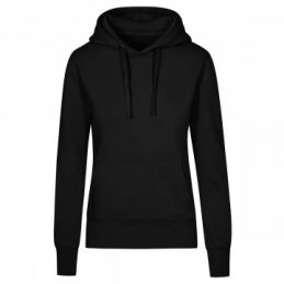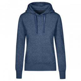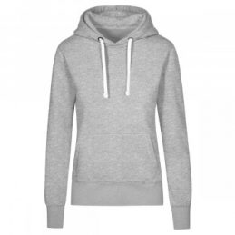 Sweatshirt, Doppelkapuze, wechselbare Kordel, Kängurutaschen, breite Elasthanbündchen an Ärmeln und Saum, Flatlock-Nähte, neutrales Größenetikett, leicht tailliert.