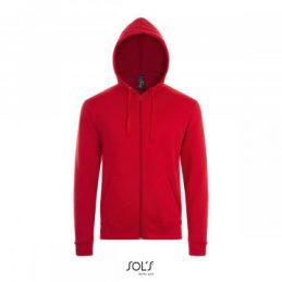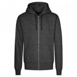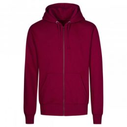 Sweatjacke, durchgehender Ton in Ton Reißverschluss, Doppelkapuze, wechselbare Kordel, Kängurutaschen, breite Elasthanbündchen an Ärmeln und Saum, Flatlock-Nähte, neutrales Größenetikett.